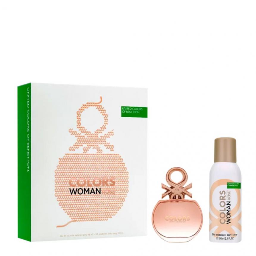 Benetton Kit Coffret feminino Colors Woman Rose Eau de Toilette 80ml + Desodorante Spray 150ml)
